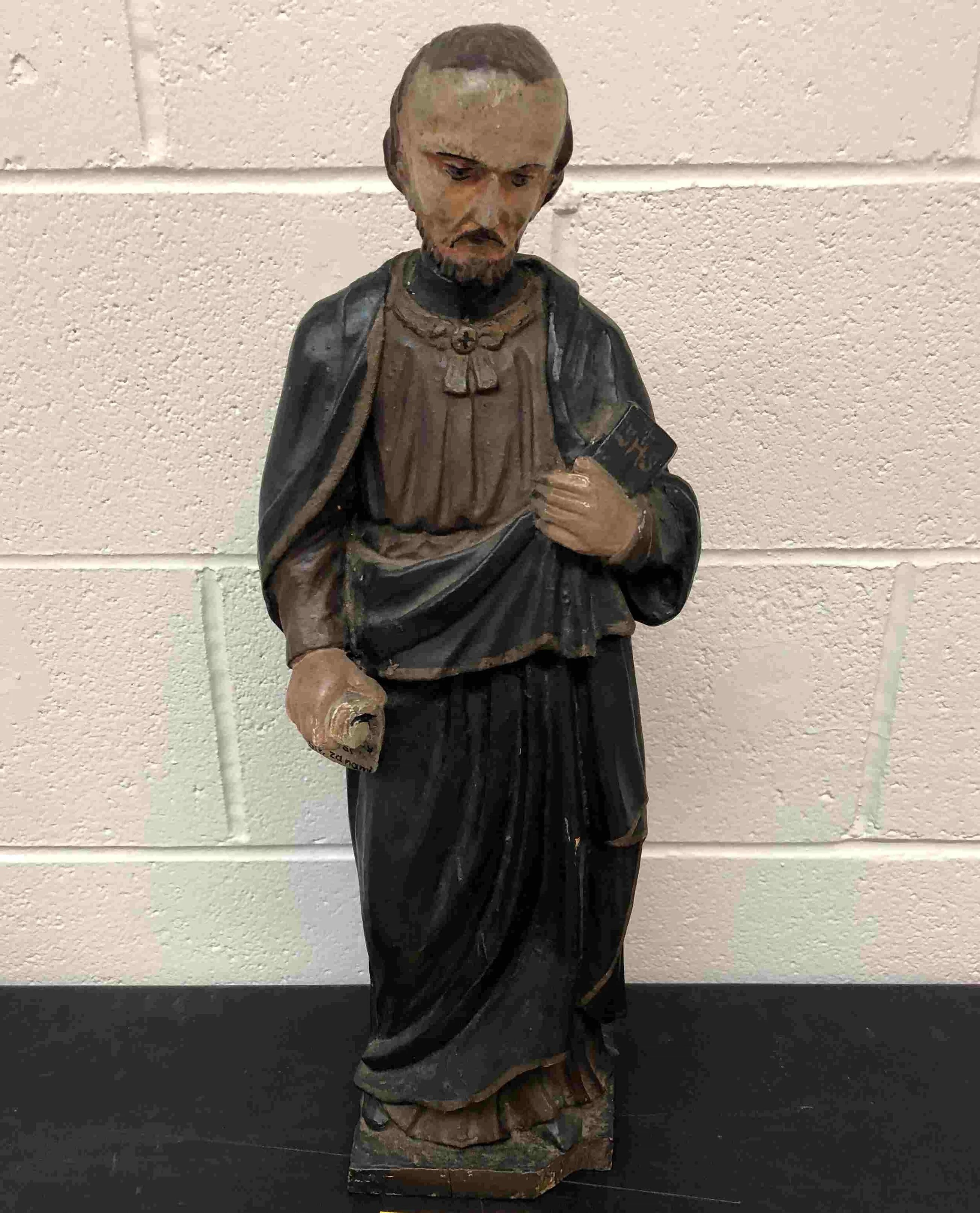 If we can decide who it might be, then we could complete the creative process of the sculptor, so to speak and add the details to make this person an authentic image. This might be more symbols appropriate to the saint, but not necessarily. At the very least the addition of a clearly visible name would be necessary to make it truly worthy of veneration as a piece of sacred art.